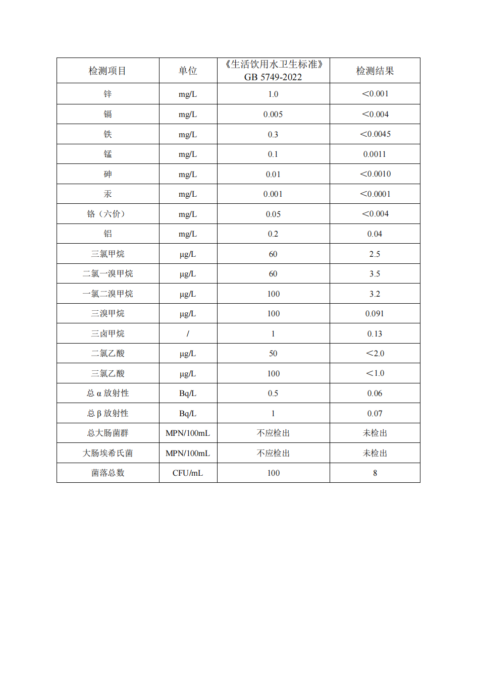 2025年6月徐圩水厂出厂水月检公示数据