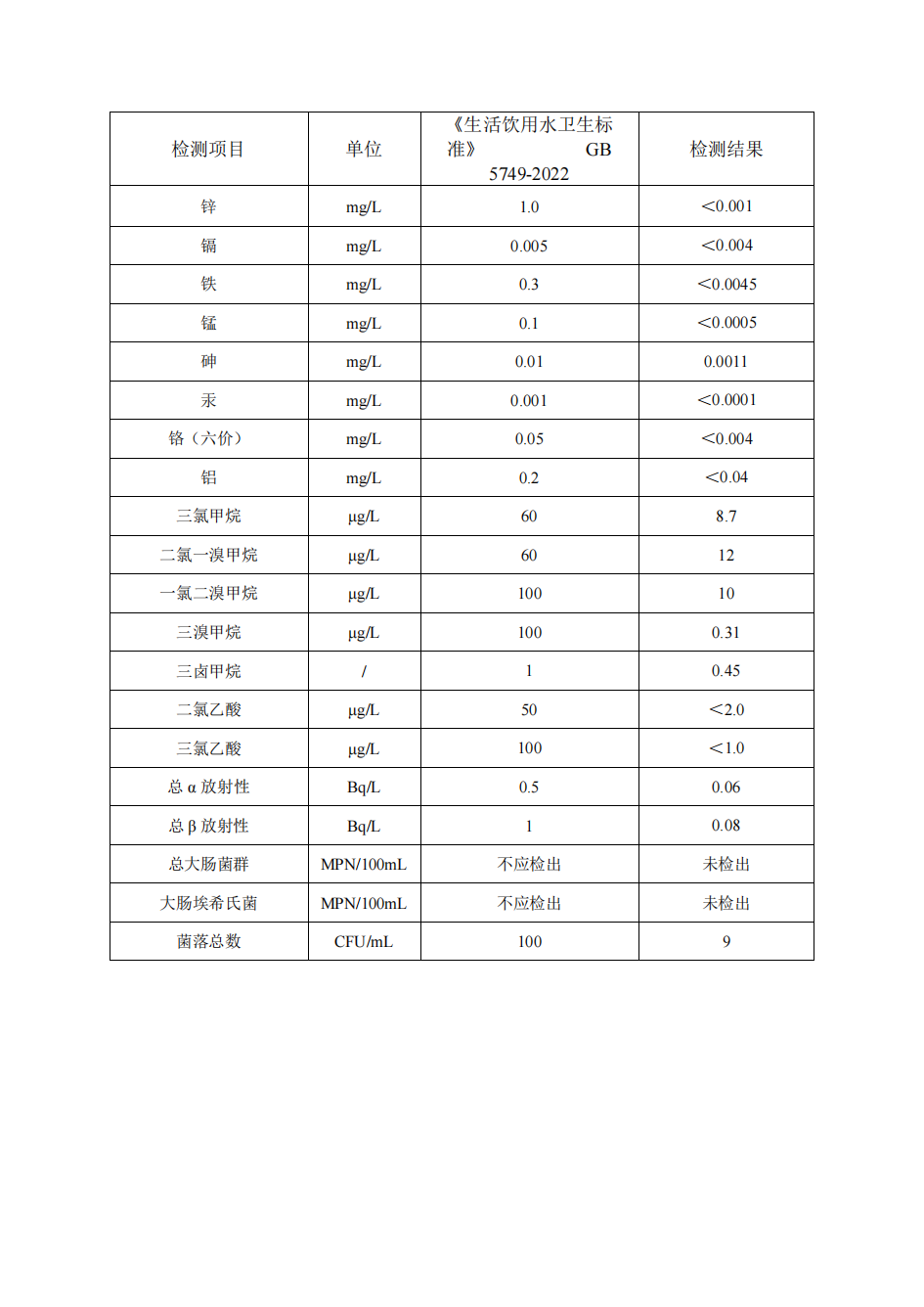 2025年5月徐圩水厂出厂水月检公示数据