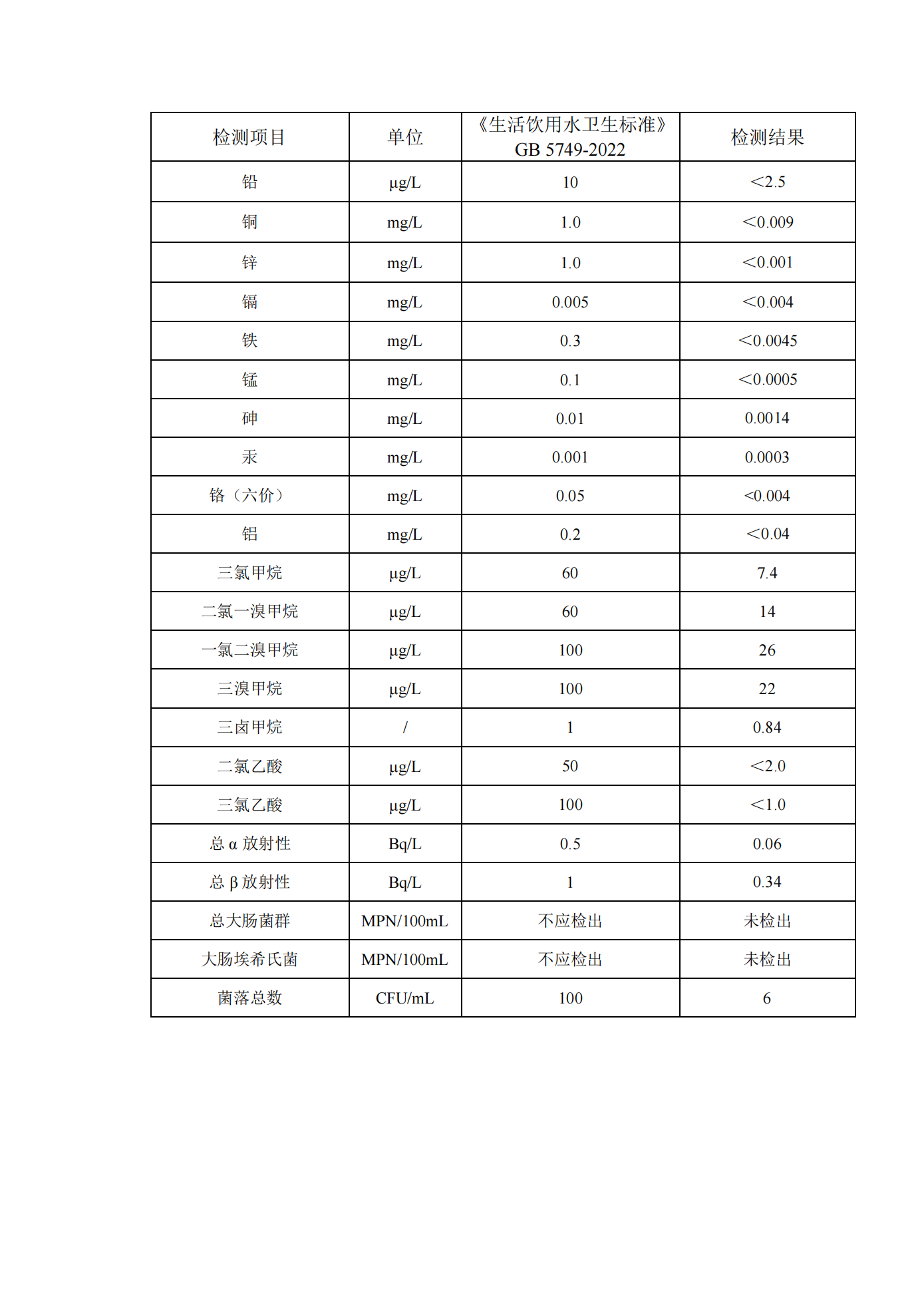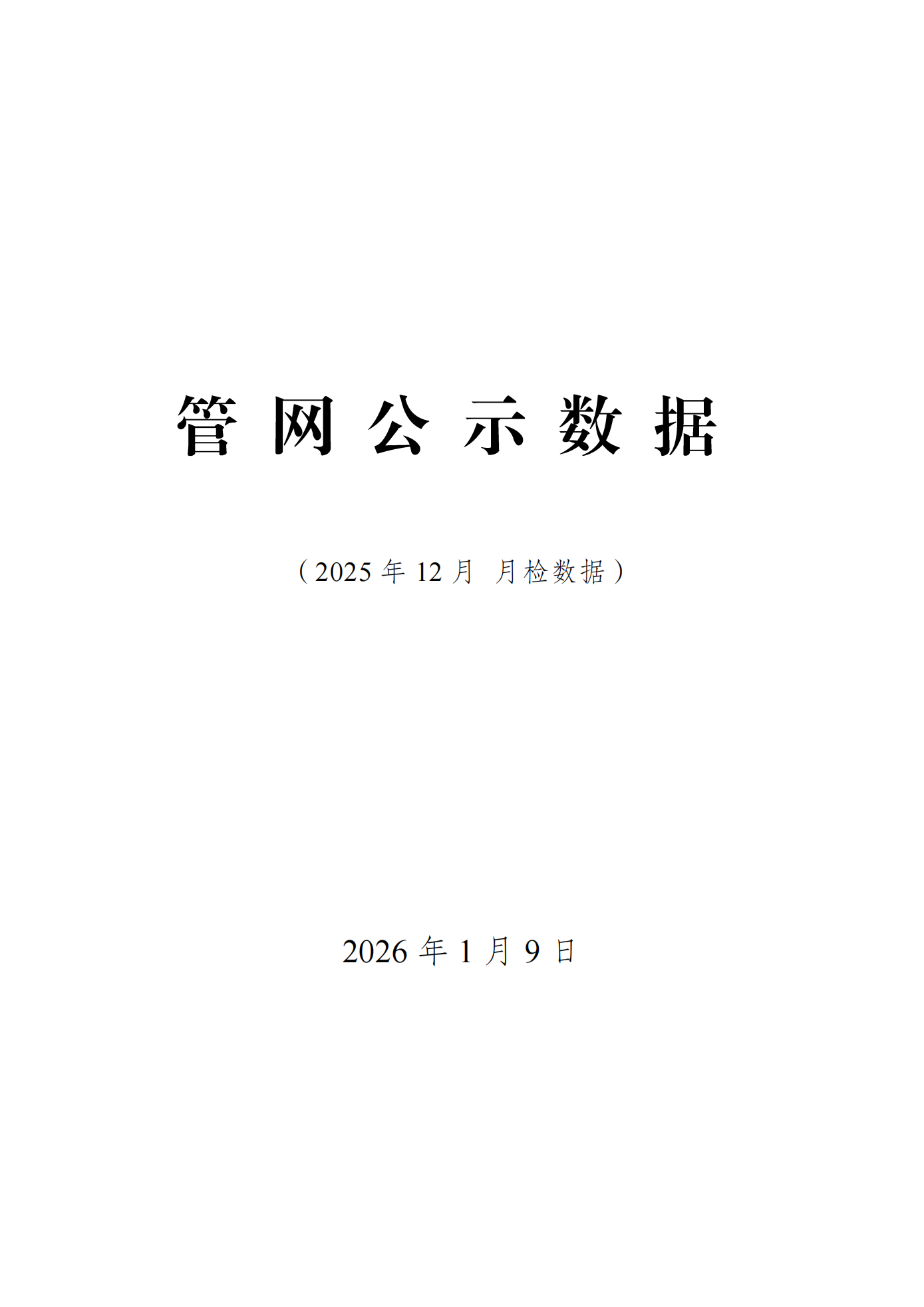 2025年12月份管网水月检水质检测数据公示表